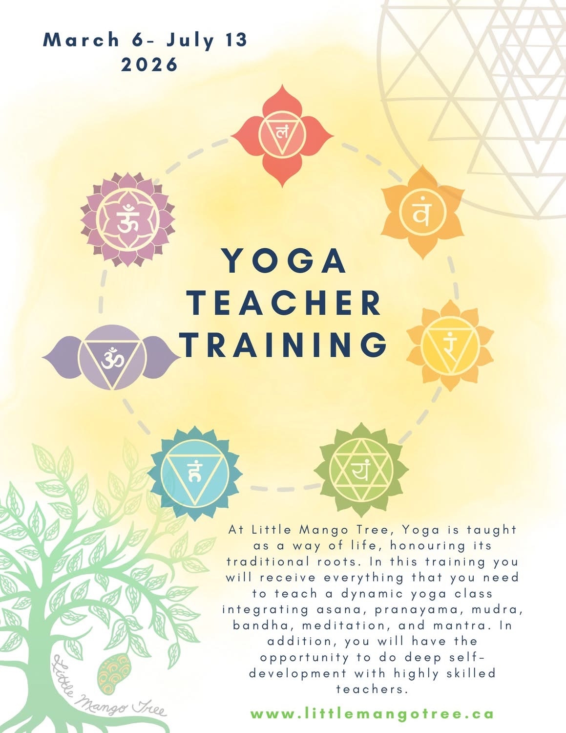 At Little Mango Tree - Yoga and Holistic Health Centre, Yoga is taught as a way of life, honouring its traditional roots. In this training you will receive everything that you need to teach a dynamic yoga class integrating asana, pranayama, mudra, bandha, meditation, and mantra from a place of connection and inner truth. In addition, you will have the opportunity to do deep self-development through reflection and creating the beginnings of a road map on the nature of the mind and what it means to be balanced.
